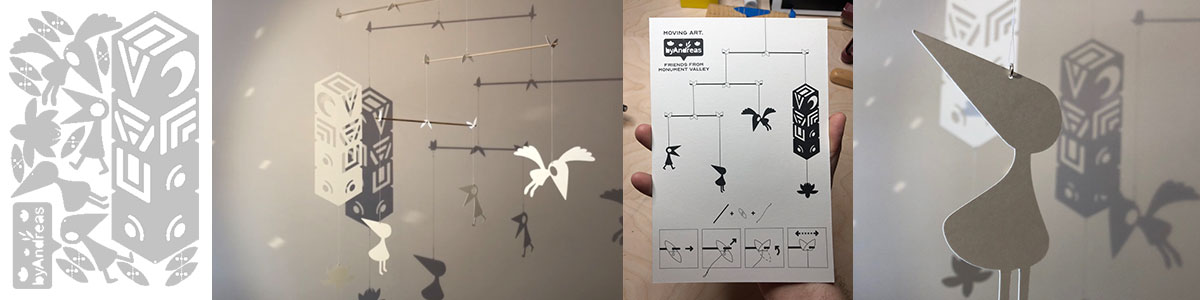 Here I borrowed the characters from the game Monument Valley. I drew my version of them, and the instructions in Illustrator and I used the Cameo vinyl cutter to cut the paper.