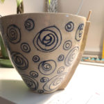 A few years ago I got a chance to test out throwing and hand building with clay. It was a great way to use my hands after a long day of just computer work. I already drew a lot at the time so, of course, I carved my doodles into the half-dry clay. There was something about the "there is no undo here..." that was a great new feeling. It got me to focus on just that and nothing else. After the carving I first dipped each piece in blue glaze, wiped them clean, so only the carved parts were blue, and the second dip in the clear glaze before the kiln. I can really recommend anyone to try it out.